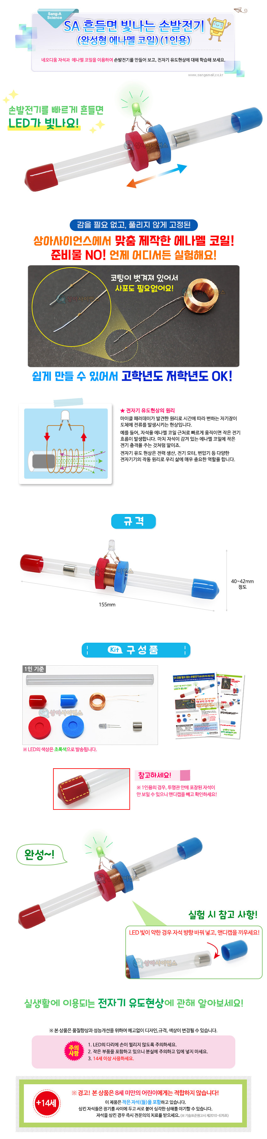 흔들면 빛나는 손발전기(완성형 에나멜코일)(1인용 포장)